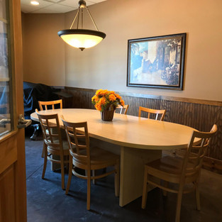 Our private community room can handle meetings, family gatherings or groups for up to 10 people and features a conference table, whiteboard and projection screen. Inquire with us for reserving it. Be sure to ask about food and beverage service as well.